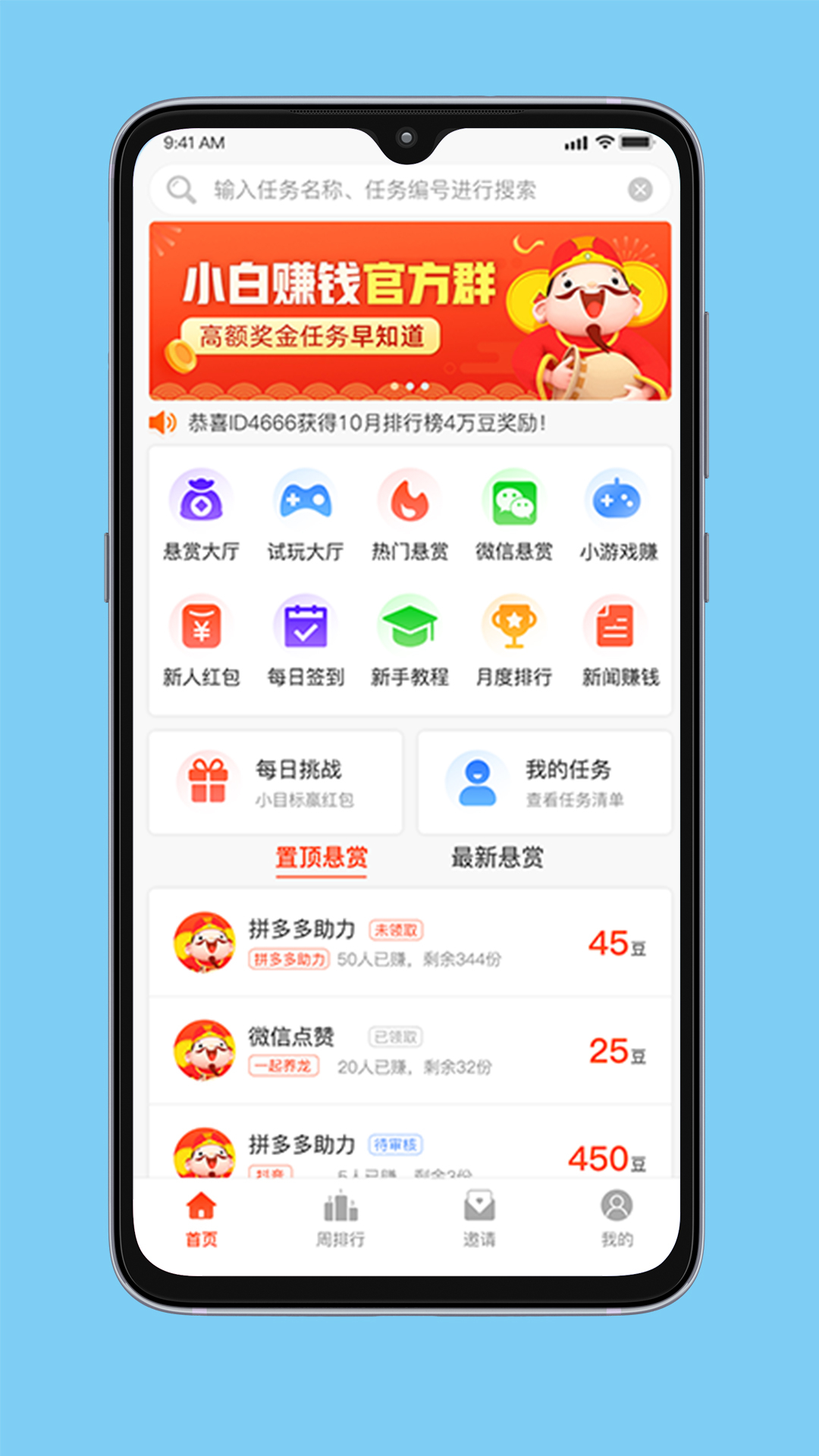 小白赚钱是一款线上有偿互助的APP,用户可以通过发布悬赏求助,也可以通过完成其他人的求助来赚钱。